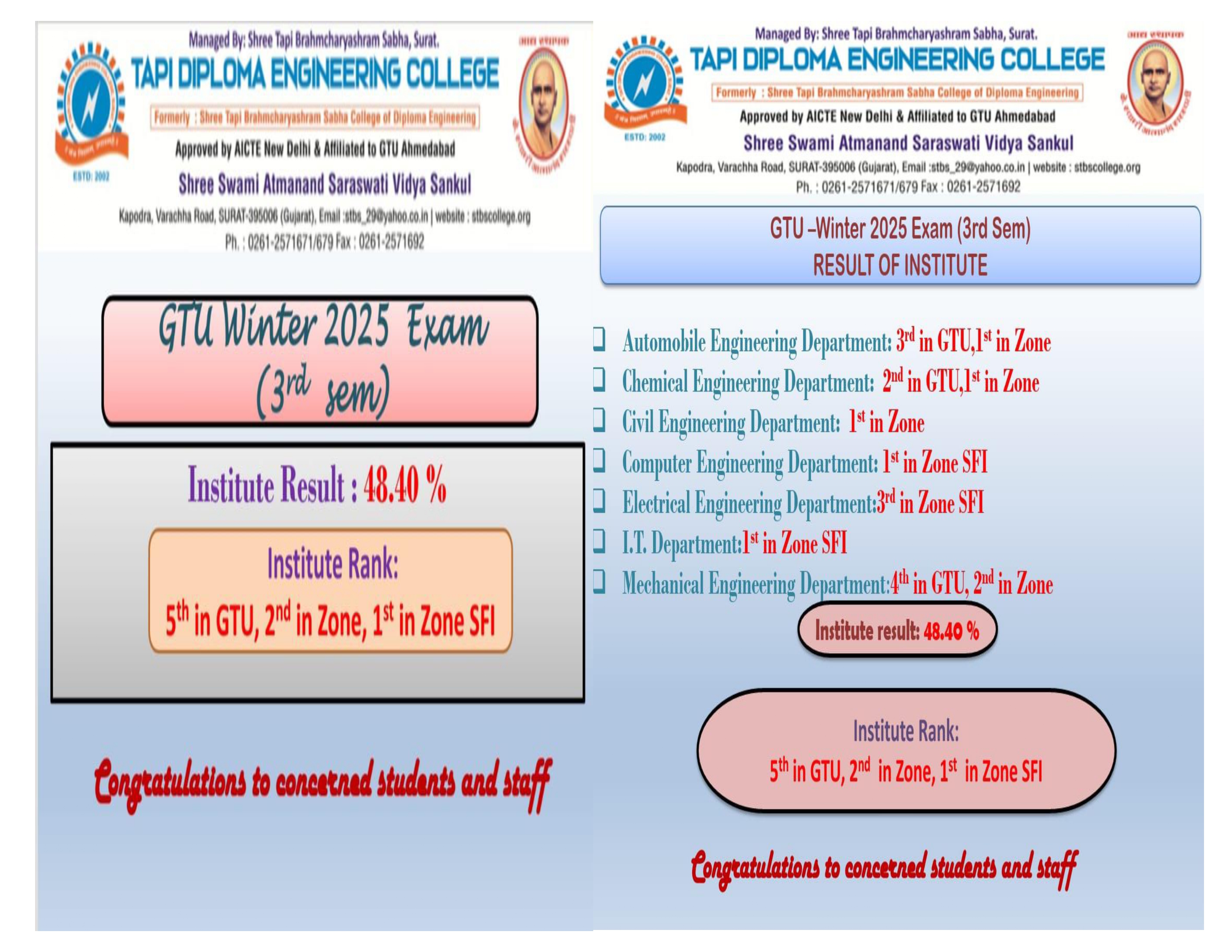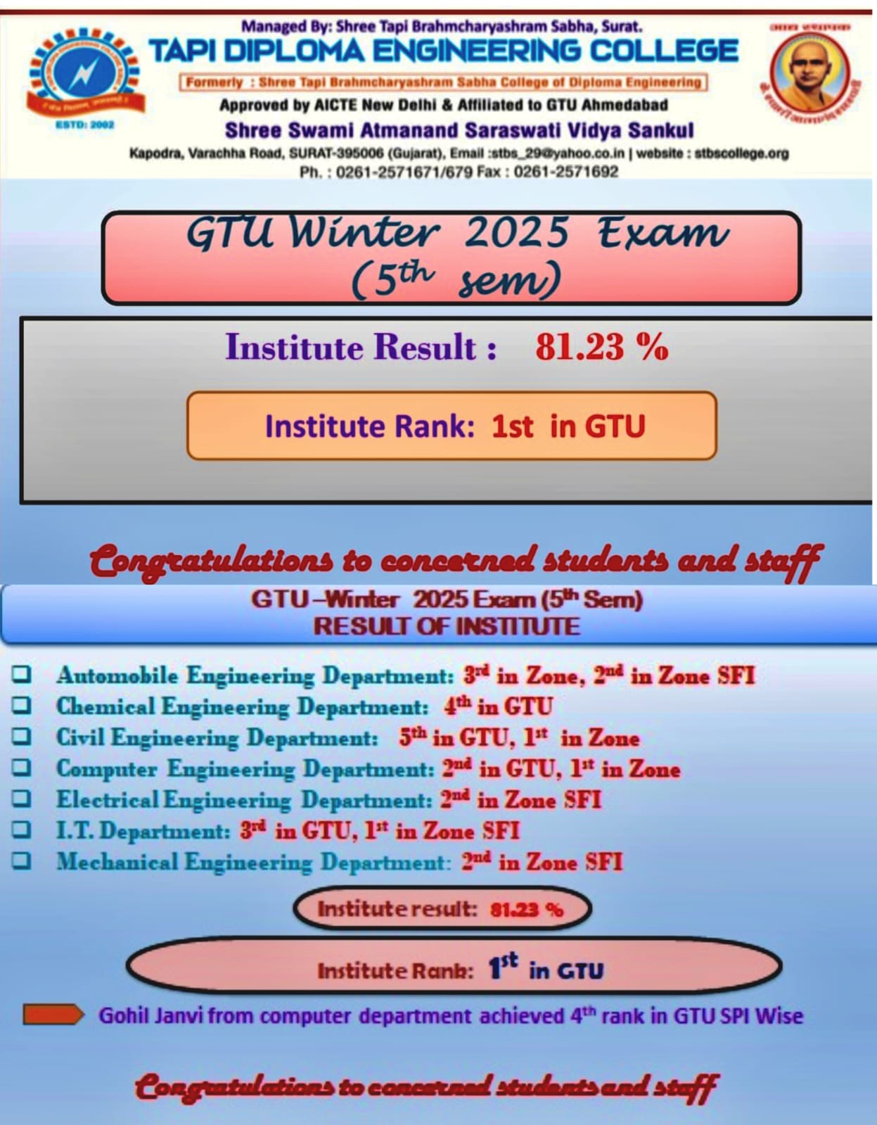 Rising prestige of Tapi Diploma Engineering College, is not only to provide higher degree of academic excellence but to present potential youth in the world of engineering by means of extracting their talent.