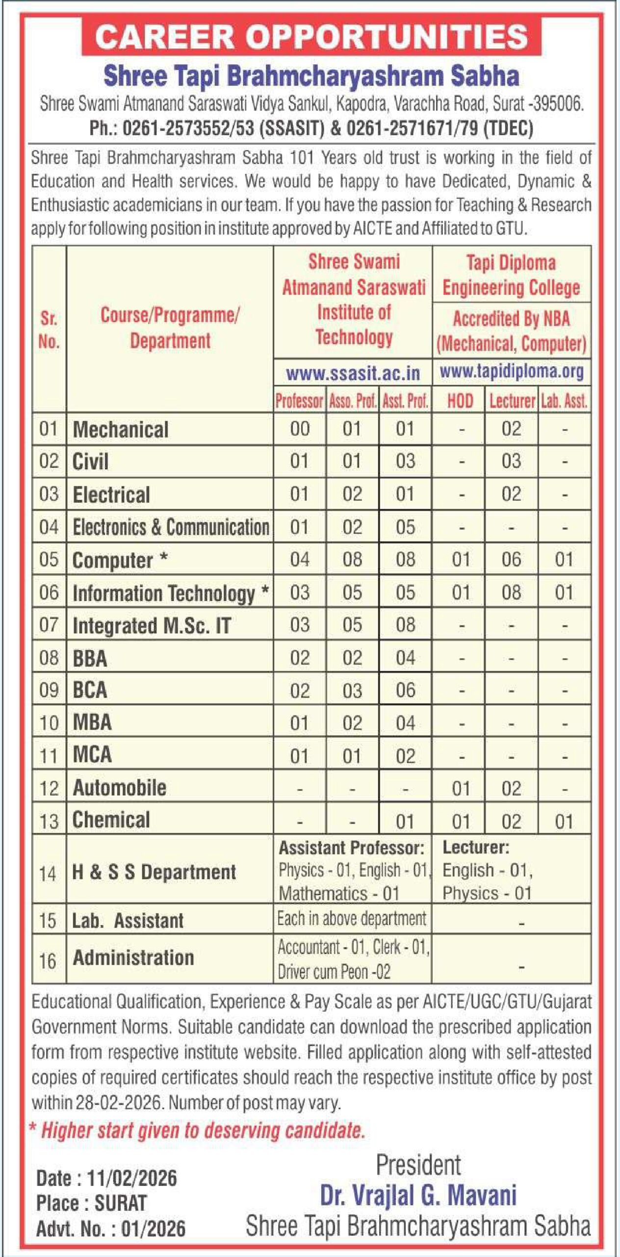 Accredited Diploma Programs: Mechanical Engineering and Computer Engineering Accredited by National Board of Accreditation, New Delhi.
