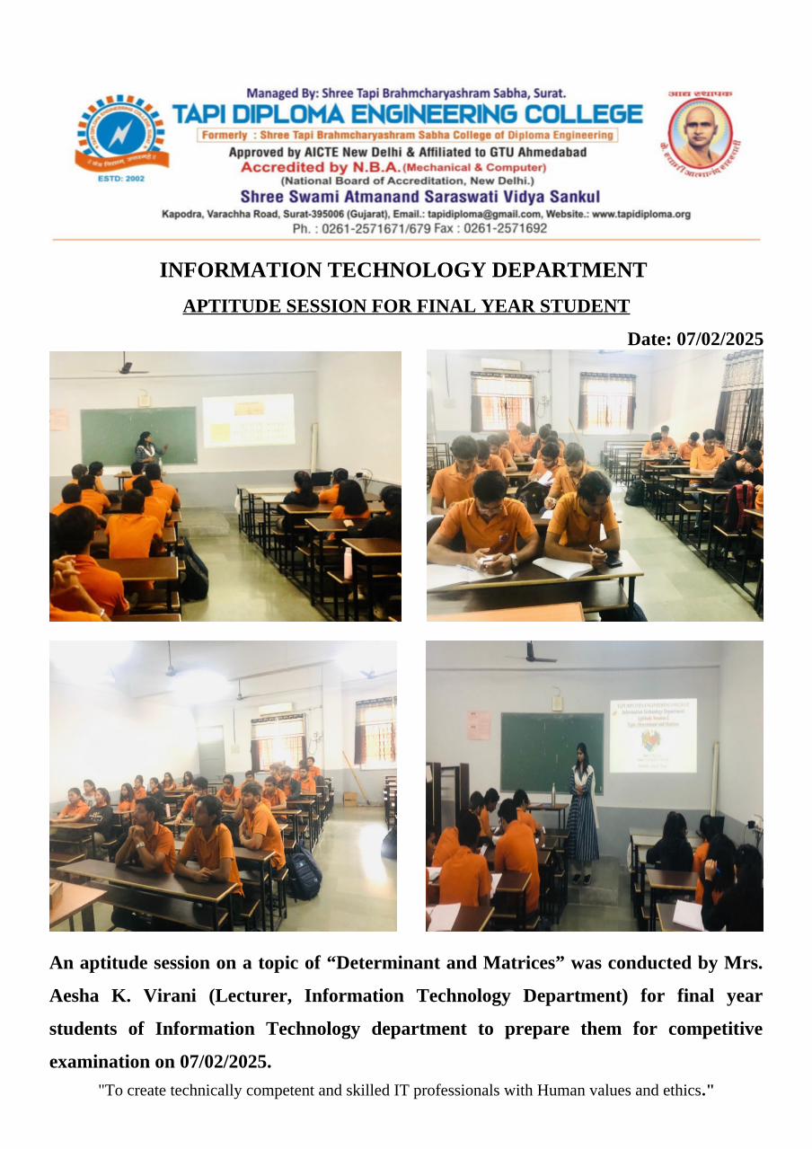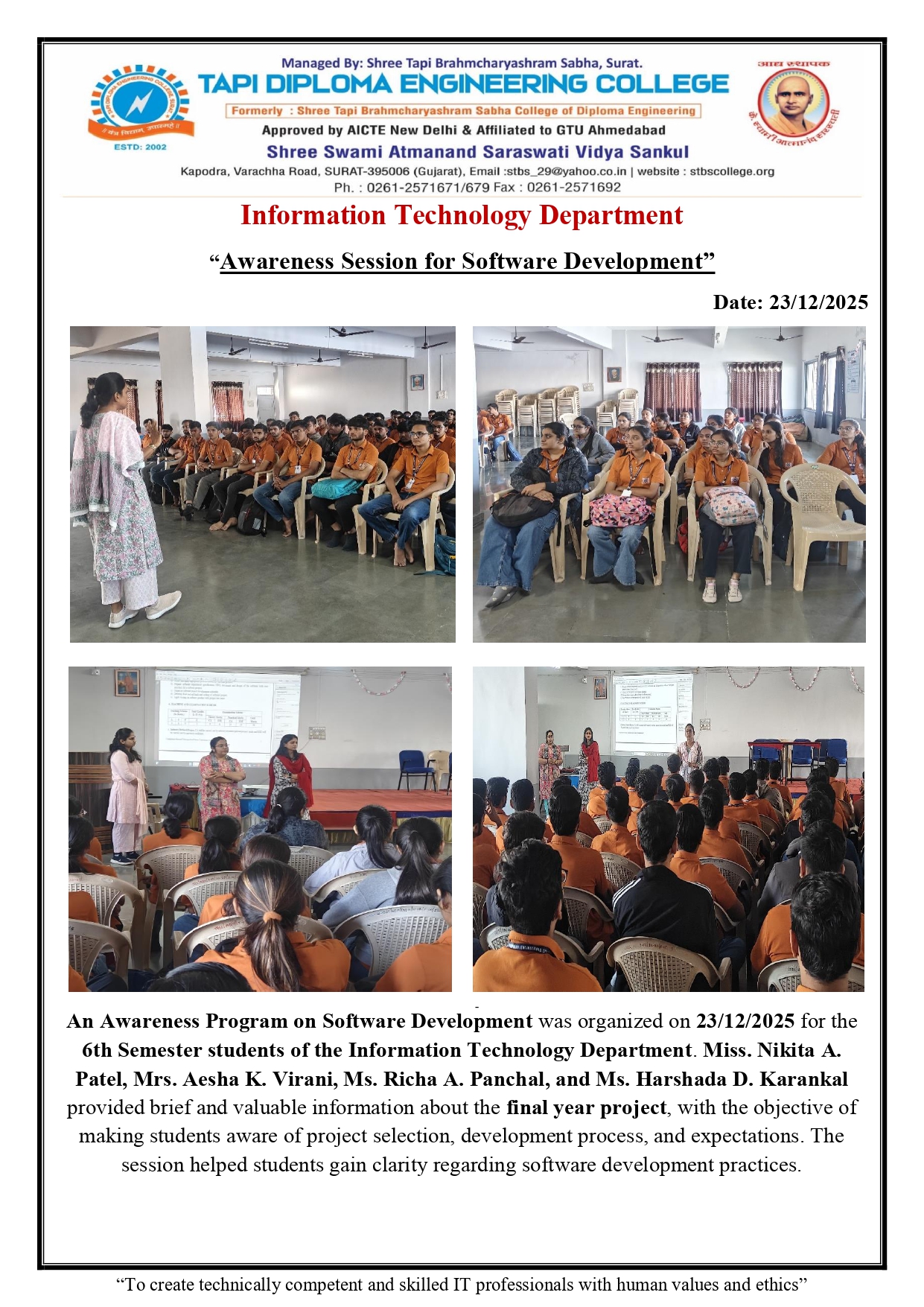 “To create technically competent and skilled IT professionals with Human values and ethics.”