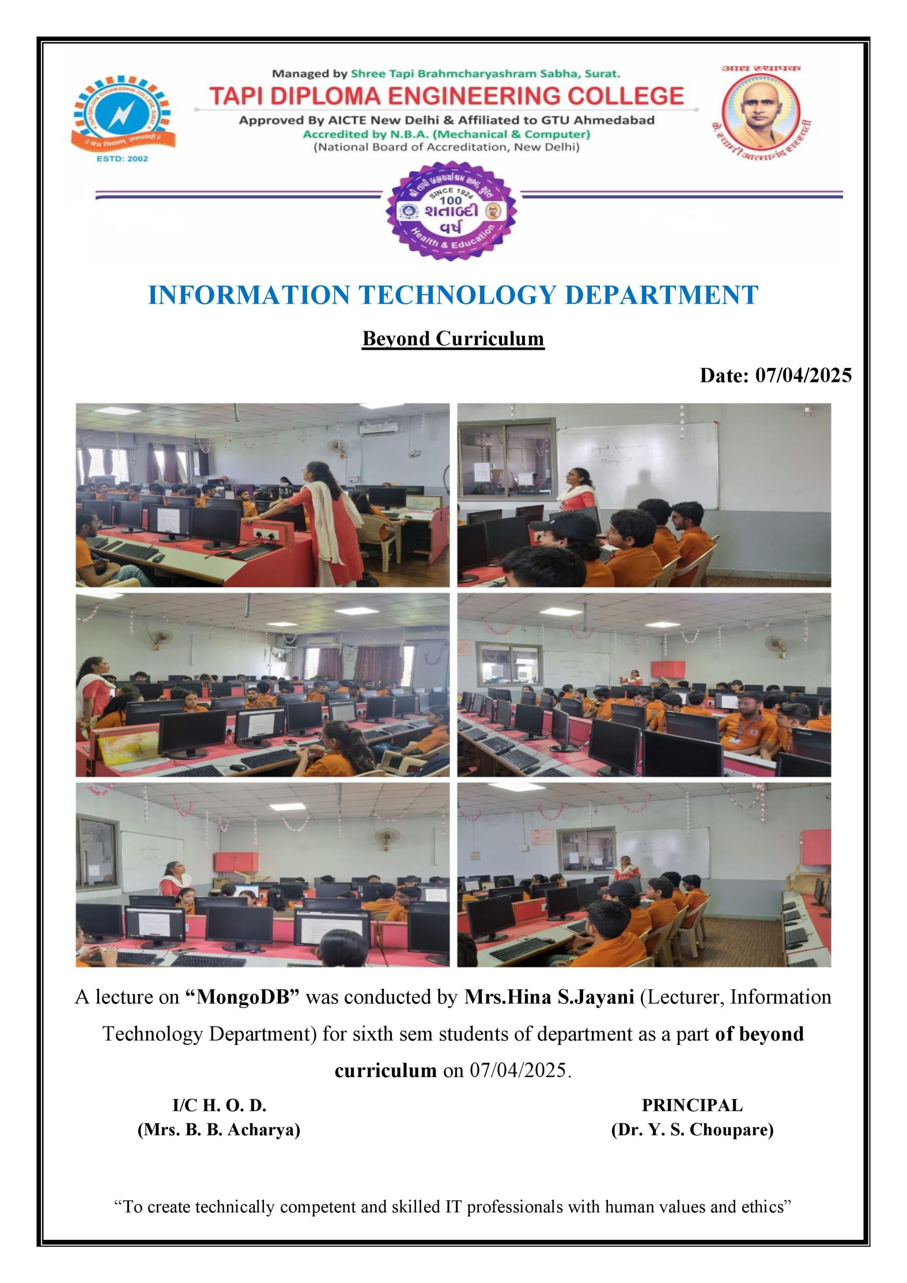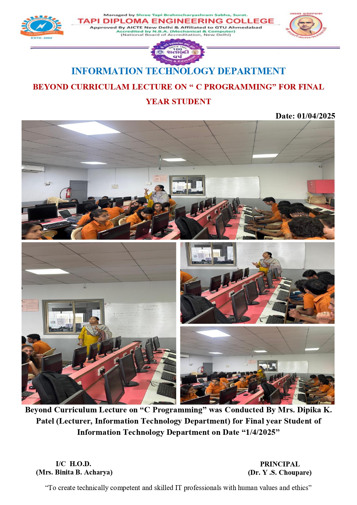- Encouraging students to participating in technical and extra co-curricular activities..